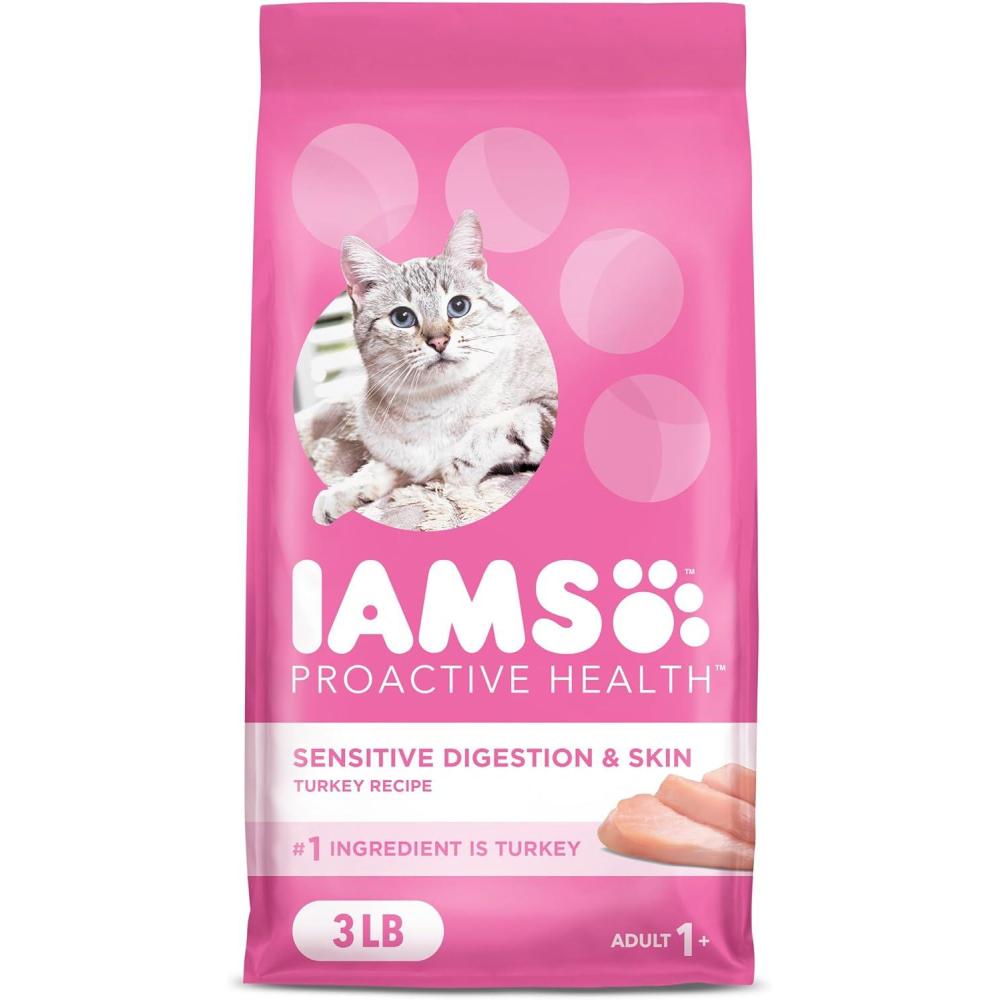 Mealtime matters. IAMS Proactive Health Adult Sensitive Digestion & Skin Dry Cat Food with Turkey is an everyday meal that’s 100% complete and balanced to help adult cats stay on the path to health. This wholesome, tasty dry cat food sensitive stomach recipe is made with real turkey and healthy ingredients that provide essential nutrients for your adult cat. These essential nutrients, like potassium and calcium, can help nourish a healthy heart for your feline friend. As an added benefit, Omega 6 and 3 fatty acids in this adult cat food help nourish your cat’s skin, and promote a glossy, vibrant coat. Veterinarians recommend IAMS cat food. The IAMS cat food sensitive stomach recipe to help support healthy digestion. Help keep your cat healthy, happy, and playful for life with tailored nutrition from IAMS cat food.