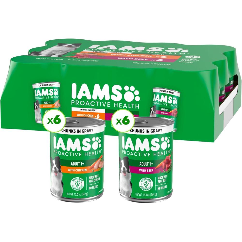 IAMS is committed to helping keep your pets healthy for life. IAMS Proactive Health Adult Wet Dog Food supports whole body health with essential nutrients and antioxidants. This variety pack of wet dog food delivers high-quality ingredients like real chicken or real beef for a delicious taste dogs can't resist. High-quality animal protein supports your dog’s strong, healthy muscles and helps with easy digestion. IAMS Proactive Health Wet Dog Food is formulated with Omega 6 Fatty Acids to promote healthy skin and coat. Plus, you can feel good knowing that your four-legged friend’s favorite wet dog food is 100% complete and balanced nutrition for adult dog maintenance. Support your dog’s whole-body health with IAMS Proactive Health Adult Wet Dog Food to help your best friend look, feel, and play their best.