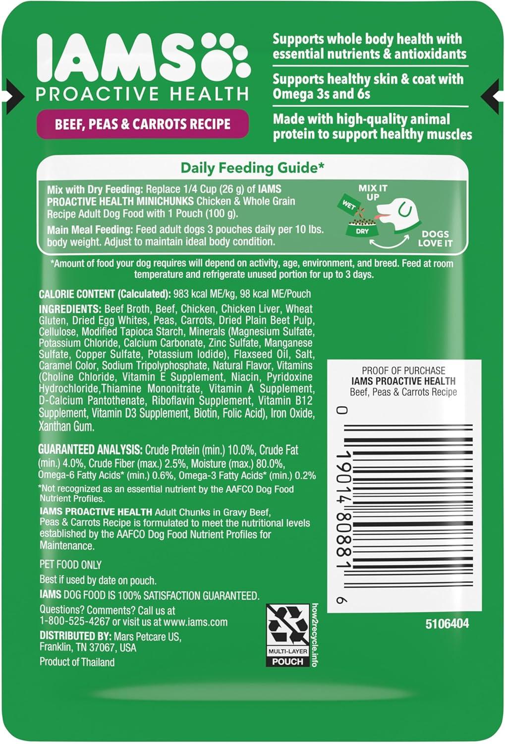 Wholesome Ingredients: IAMS Proactive Health Adult Wet Dog Food Chicken, Peas and Carrots Recipe is made with essential nutrients and antioxidants to support whole-body health
