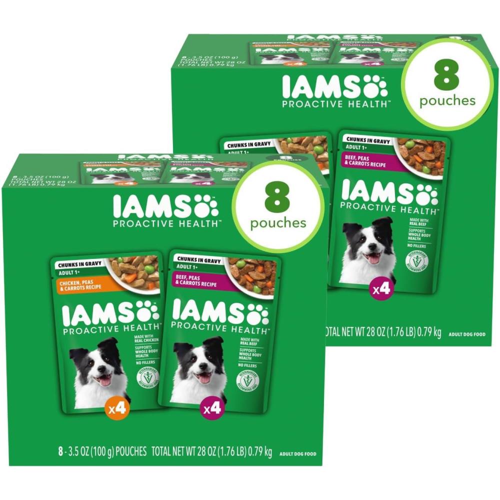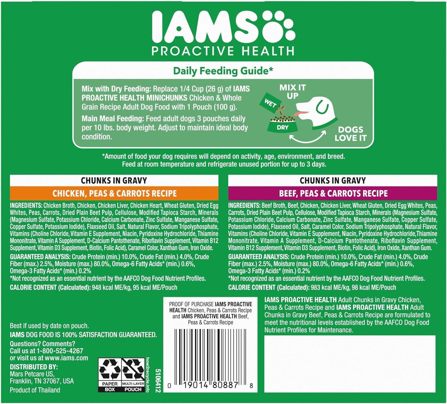 IAMS Proactive Health Adult Wet Dog Food, Chicken, Peas and Carrots Recipe, 3.5 oz. Pouch (16 Count, Pack of 1)(Variety Pack: Chicken & Beef)