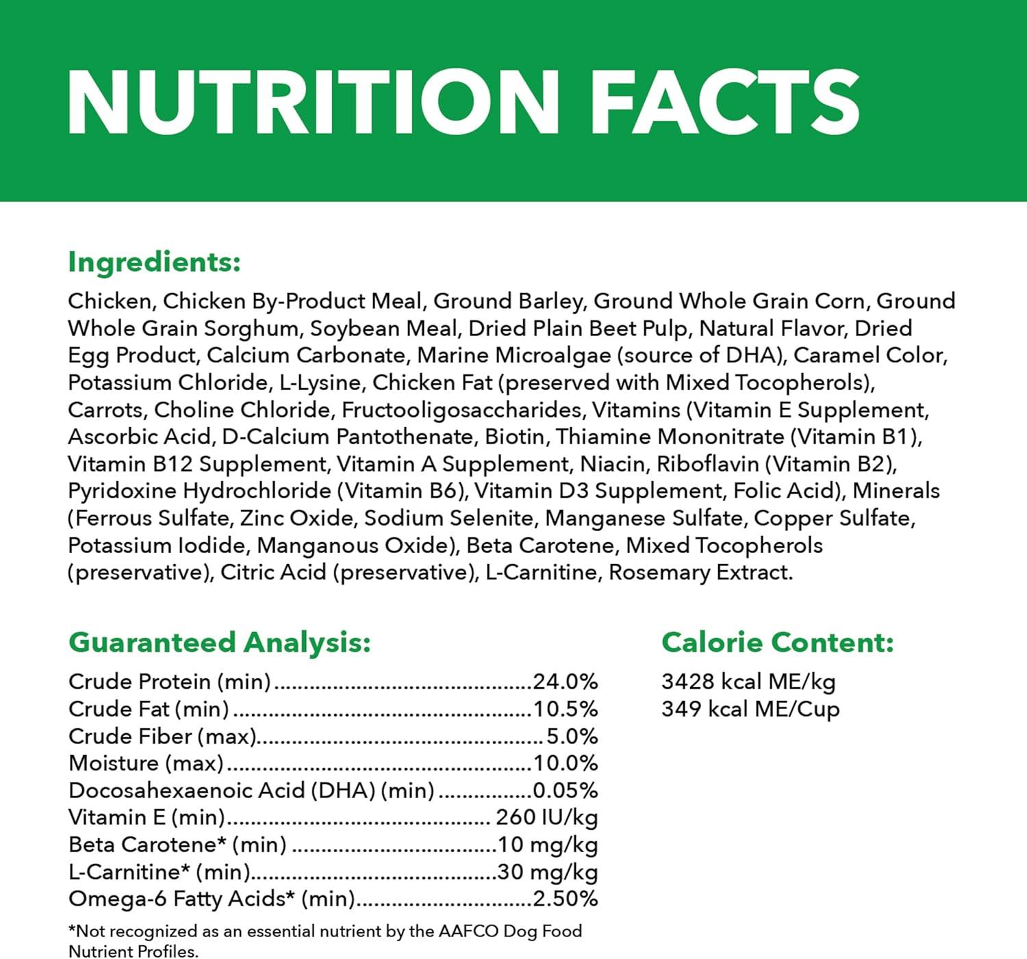 Your large breed senior dog is one-of-a-kind… that’s why IAMS makes healthy aging senior dog food that’s just as unique as they are. IAMS Proactive Health Healthy Aging recipes help your best friend maintain strong muscles and a healthy immune response with delicious dry dog food that is made to be lower in fat, higher in protein, and higher in Vitamin E and Beta-carotene compared to IAMS Minichunks dog food recipes. With real, farm-raised chicken as the first ingredient, this dry dog food is formulated to support healthy bones and joint health in canines with a balance of key nutrients formulated for large breed senior dogs. A blend of fiber and prebiotics promotes healthy digestion. Plus, the tasty dry dog food supports a strong immune system with antioxidants for optimal health. There’s a reason veterinarians recommend IAMS dog food. When you feed your mature large senior dog IAMS dry dog food, you can feel good knowing they’re getting the nutrition they need to bring out their unique best.