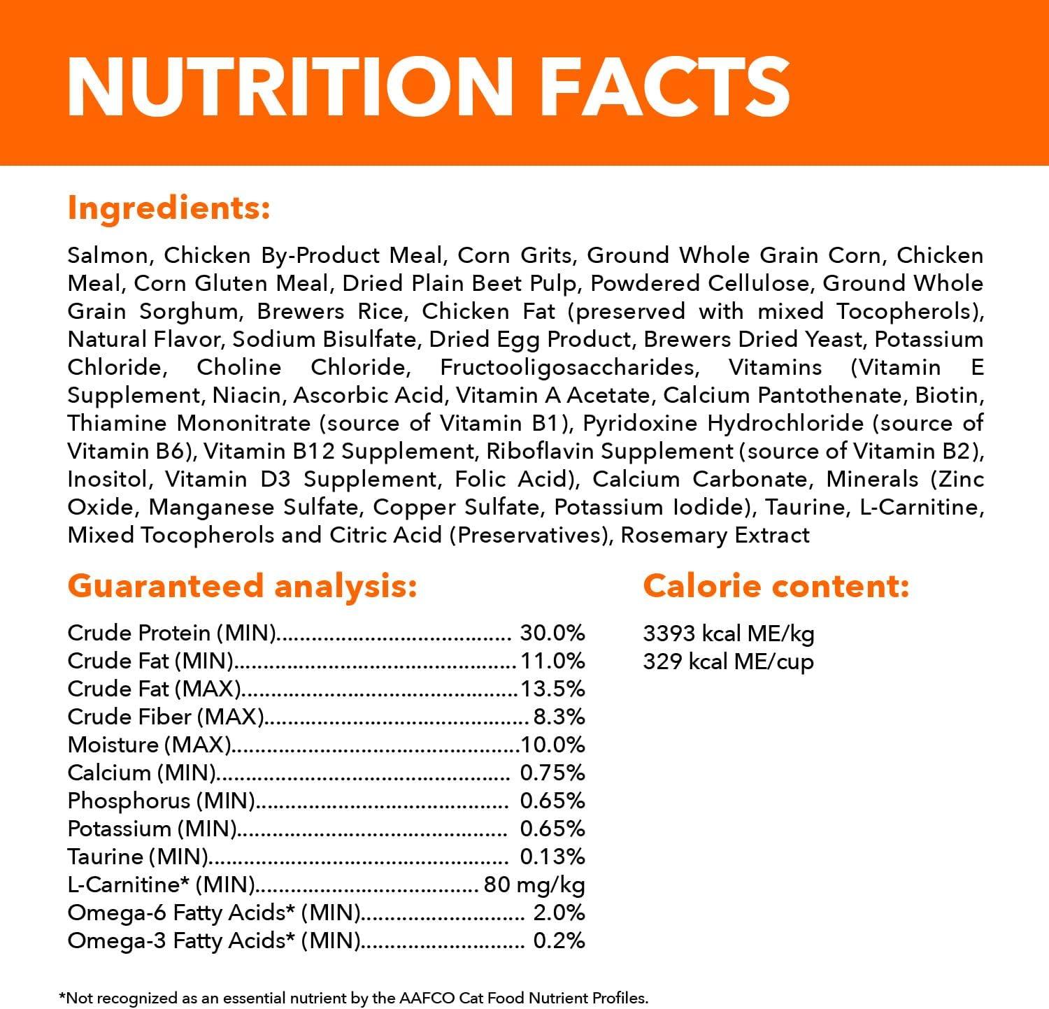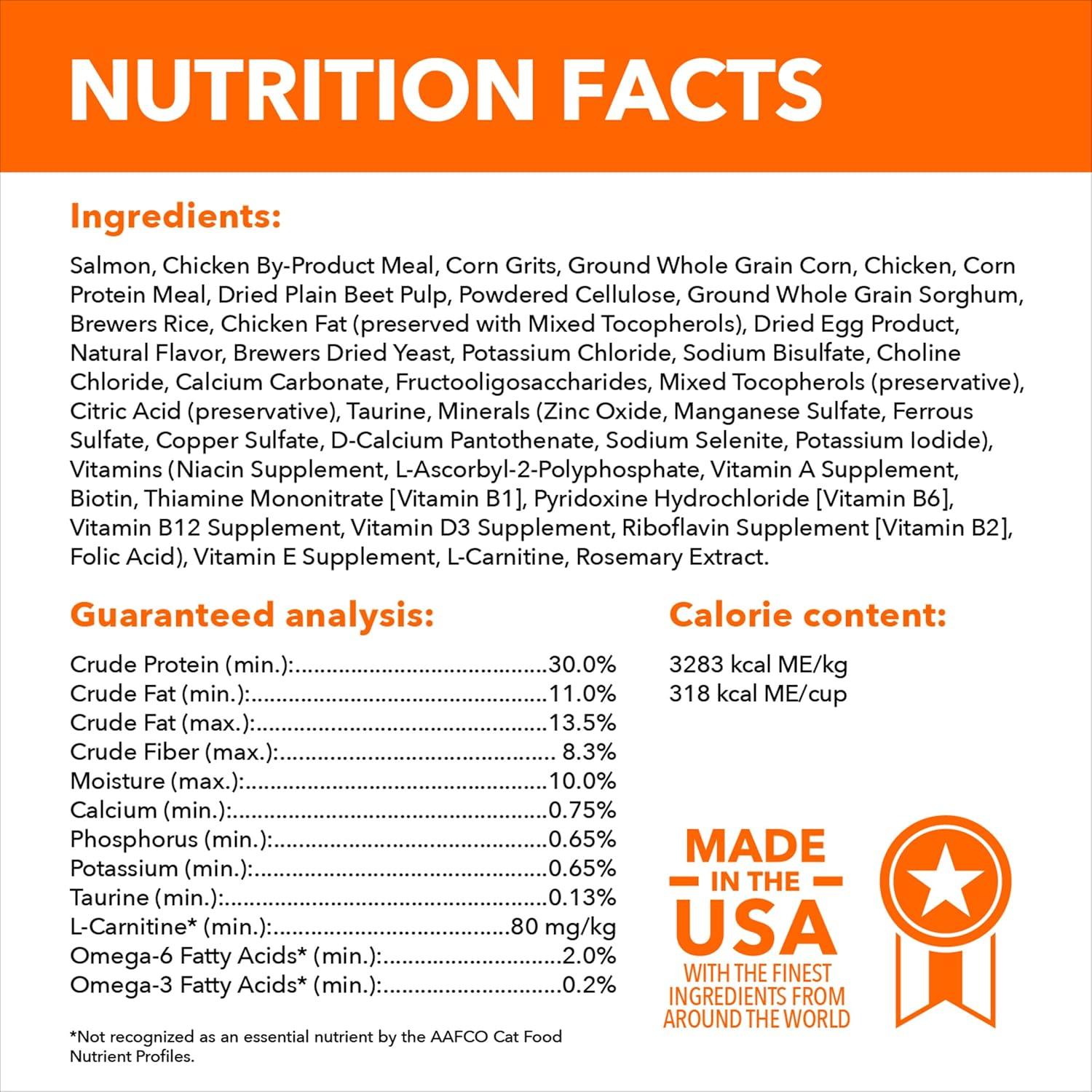 Crafted to support the optimal health of your indoor cat, IAMS Proactive Health Indoor Weight & Hairball Care Adult Dry Cat Food with Salmon is an everyday meal that’s 100% complete and balanced. This wholesome, tasty recipe is made with real salmon, and healthy ingredients that provide essential nutrients for your indoor cat. IAMS Proactive Health indoor cat food is formulated with a proprietary fiber blend with beet pulp that helps reduce hairballs before they start, making this the perfect indoor cat food for hairball care. To further support your indoor cat’s health, this kibble is specifically formulated with L-carnitine to help burn fat and maintain a healthy metabolism. Flavorful, nutrient-rich, and formulated for every stage of life, it’s no wonder veterinarians recommend IAMS. Help keep your cat healthy, happy, and playful for life with tailored nutrition from the IAMS brand.